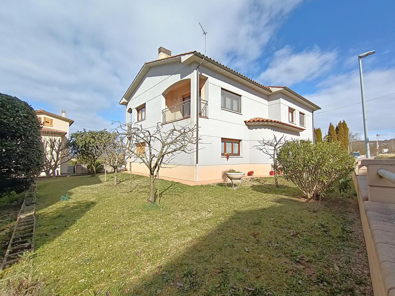 DescripcióEs ven casa a quatre vents, situada en zona residencial, molt ben comunicada. Amb una superfície construïda de 273m2, distribuïts en dues plantes. A la planta baixa (de 140m2) hi tenim un garatge per 3-4 cotxes amb porta motoritzada, sala de maquines i serveis. A la planta superior hi tenim l' habitatge (d' uns 133m2), amb un ampli menjador-estar de 37m3, amb sortida a dues terrasses, cuina office molt amplia, 4 habitacions (3 dobles amb armaris encastats + 1 individual), totes exteriors i assolellades, dos banys complets. Calefacció a gasoil, descalcificador. Jardí d' uns 300m2. Edificació de qualitat. Ideal per primera o segona residencia, en un entorn magnific.